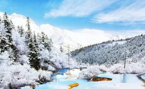 冬日的九寨沟山峦与树林银装素裹,树正群沟依旧一片蓝绿一片绿蓝,只是多了点白雪的点缀。